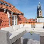 The 102 m^2 property is situated in the Old Town district of Quedlinburg, at a medium distance from Rathaus. The 10th century Romanesque Church of St. Servatius is about a 5-minute drive from the apartment. Nearby attractions include St Nikolai Church, within minutes of Apartment Anno 1720.